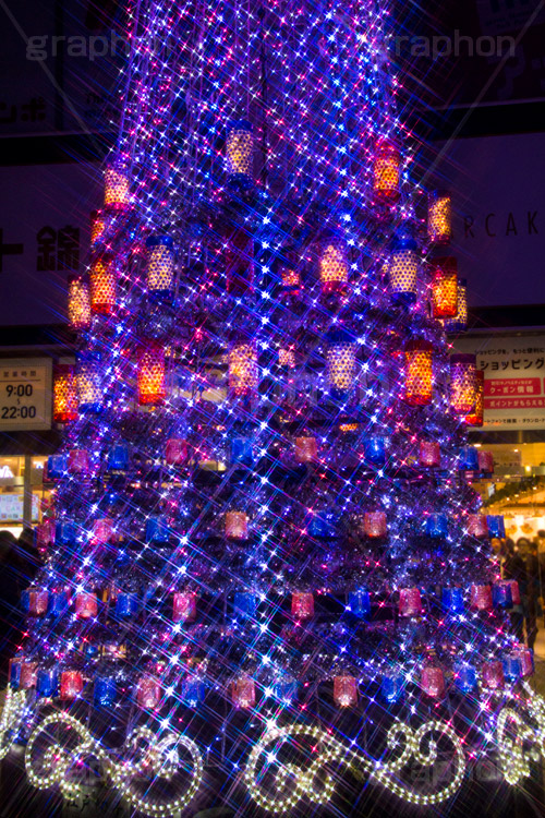 キーワード 錦糸町のイルミネーション, 錦糸町, 駅前, 墨田区, クリスマスツリー, ツリー, イルミネーション, イルミ, illumination, Christmas, shopping, 電飾, 電球, 発光ダイオード, LED, , キラキラ, 綺麗, きれい, キレイ, , , クリスマス, 商業施設, 施設, ショッピング, 買い物, アルカタワーズ, アルカキット, 伝統工芸, 切子, 和風, japan, クロスフィルタ,