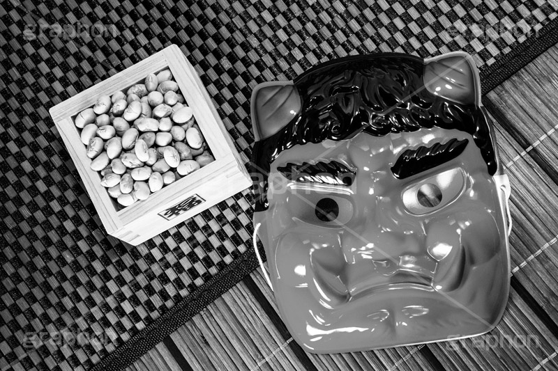 キーワード 豆撒き(モノクロ), モノクロ, 白黒, しろくろ, モノクローム, 単色画, 単彩画, 単色,