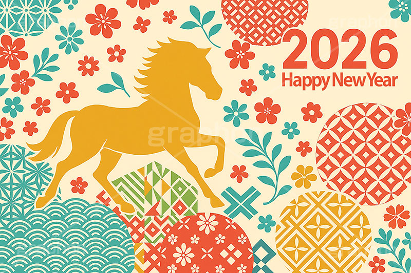 キーワード 午年シンプルイラスト, 和柄, 花柄, 馬イラスト, , , うま, ウマ, 午年, 干支, 正月, お正月, 年賀状, 2026午年, 2026, 午年年賀状, 新年, HappyNewYear, ハッピーニューイヤー, シルエット, ニューイヤー, アニバーサリー, イラスト, illustration, japan, horse, silhouette,