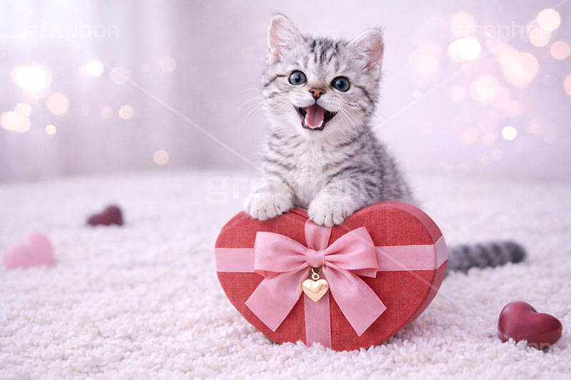 キーワード プレゼント, ハート, リボン, 贈り物, , , バレンタインデー, バレンタイン, アメリカンショートヘアの子猫, ねこ, ネコ, , 子猫, キャット, アメリカンショートヘア, アメショ, かわいい, カワイイ, にゃー, ニャー, 可愛い, キュート, ペット, 動物, cute, pet, cat, valentine, present, heart, AI生成素材,