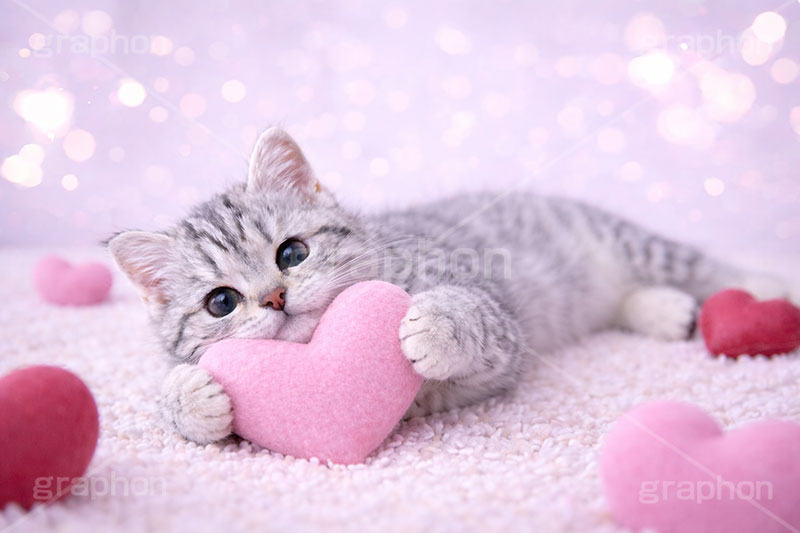 キーワード ハート, , , バレンタインデー, バレンタイン, ごろごろ, ゴロゴロ, 寝転び, アメリカンショートヘアの子猫, ねこ, ネコ, , 子猫, キャット, アメリカンショートヘア, アメショ, かわいい, カワイイ, 可愛い, キュート, ペット, 動物, cute, pet, cat, valentine, present, heart, AI生成素材,