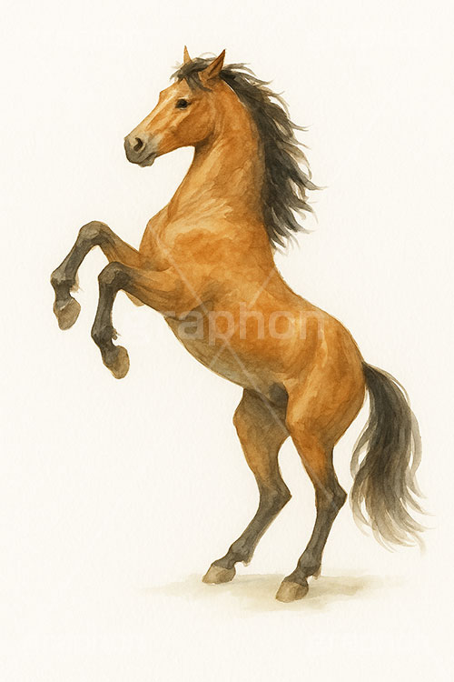 水彩テイスト馬イラスト,