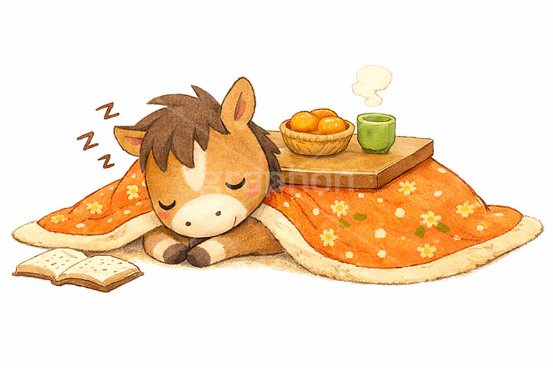 キーワード かわいい馬イラスト, 馬イラスト, , , うま, ウマ, こたつ, うたた寝, 寝正月, 寝る, みかん, かわいい, カワイイ, 可愛い, キャラクター, 午年, 干支, 正月, お正月, 年賀状, 2026午年, 午年年賀状, 新年, ニューイヤー, アニバーサリー, イラスト, illustration, japan, horse, cute, character,