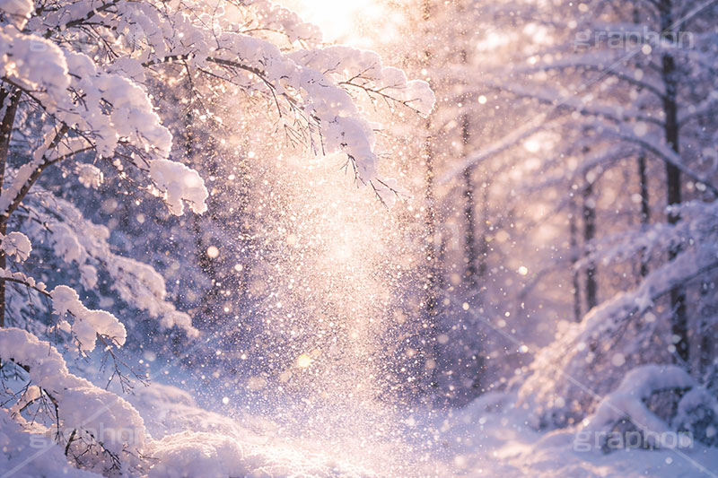 キーワード ダイヤモンドダスト, スノーダスト, 反射, フレア, キラキラ, きらきら, , ゆき, 枯木, , , , ロマンチック, ポエム, snow, winter, poem, flare, AI生成素材,